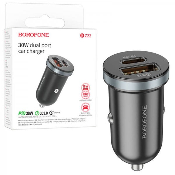 شارژر فندکی بروفون خروجی تایپ سی با قابلیت ساپورت سوپرفست شارژ سامسونگ تا 25 وات مدل BZ22